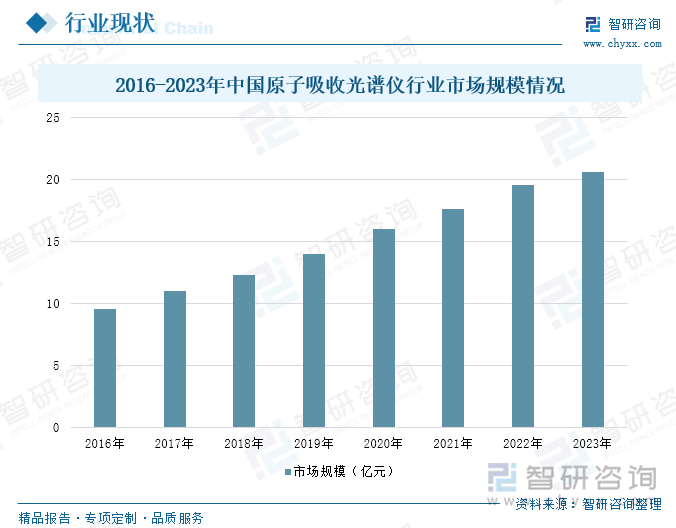 跟着公共环保意志的不休增强以及检测尺度的日益严格,越来越多的企业和机构启动喜爱原子招揽光谱仪的应用。2023年,中国原子招揽光谱仪行业市集限度为20.58亿元,同比增长5.16%。这一增长不仅反应了市集对高效、精确检测征战的需求加多,也体现了原子招揽光谱仪在多个界限的平凡应用。从应用界限来看,原子招揽光谱仪在环保、食物、医药、地质等传统界限的需求接续增长。相称是在环保界限,跟着碳达峰、碳中庸目的的鞭策,对高精度碳监测仪器的需求权臣加多。此外,食物安全检测尺度的升迁也推动了原子招揽光谱仪在食物行业的应用,使其成为检测食物中重金属含量的遑急器用。