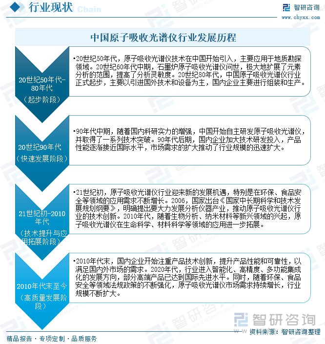 20世纪90年代的快速发展阶段,90年代中期,跟着国内科研实力的增强,中国启动自主研发原子招揽光谱仪,并取得了一系列期间突破。90年代后期,国内企业加大期间研发参加,家具质能逐渐接近国际水平,市集需求的扩大推动了行业限度的赶紧扩大。
