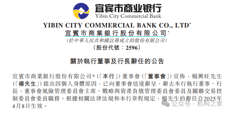4月8日晚间,宜宾银行发布公告,杨兴旺提倡因个东说念主体格原因,已向董事会投递辞呈,辞去宜宾银行延迟董事、行长、董事会风险搞定委员会主席、计谋与钞票欠债搞定委员会委员及关联来回边界委员会委员职务。
